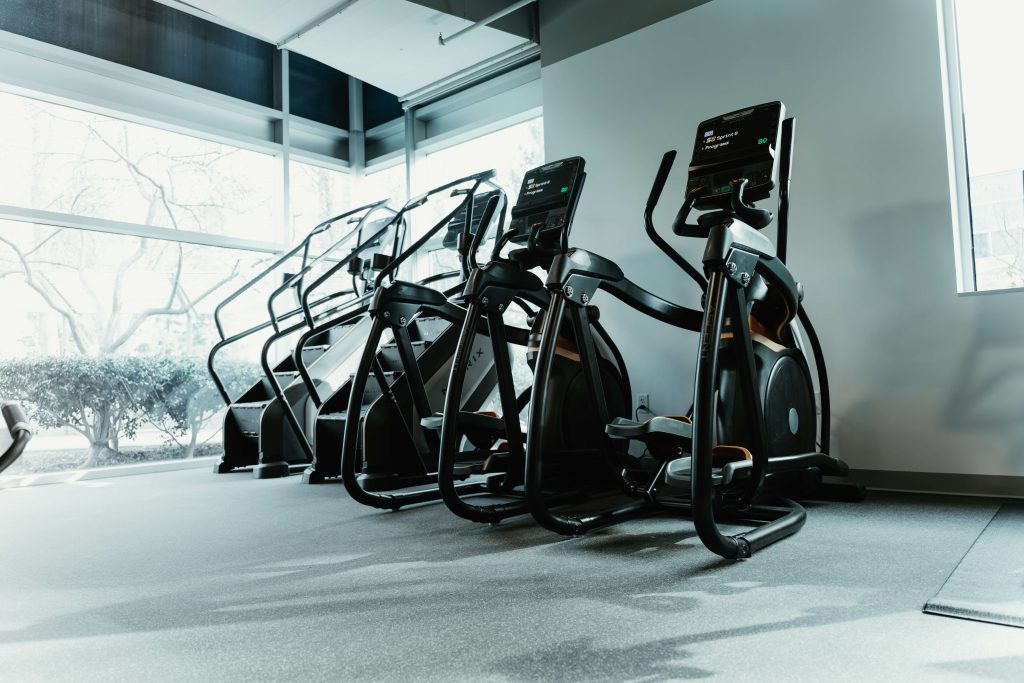 - Cardio: Treadmills, ellipticals, bikes, rowers